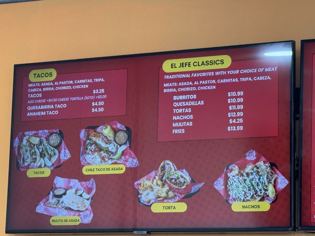 Tacos are another highlight at El Jefe, with a selection of options like Chorizo Taco, Asada Taco, and Chicken Taco Al Pastor Taco. Each taco is packed with authentic flavors and served fresh. If you're craving something more substantial, try their Torta, a delicious Mexican sandwich packed with fillings.